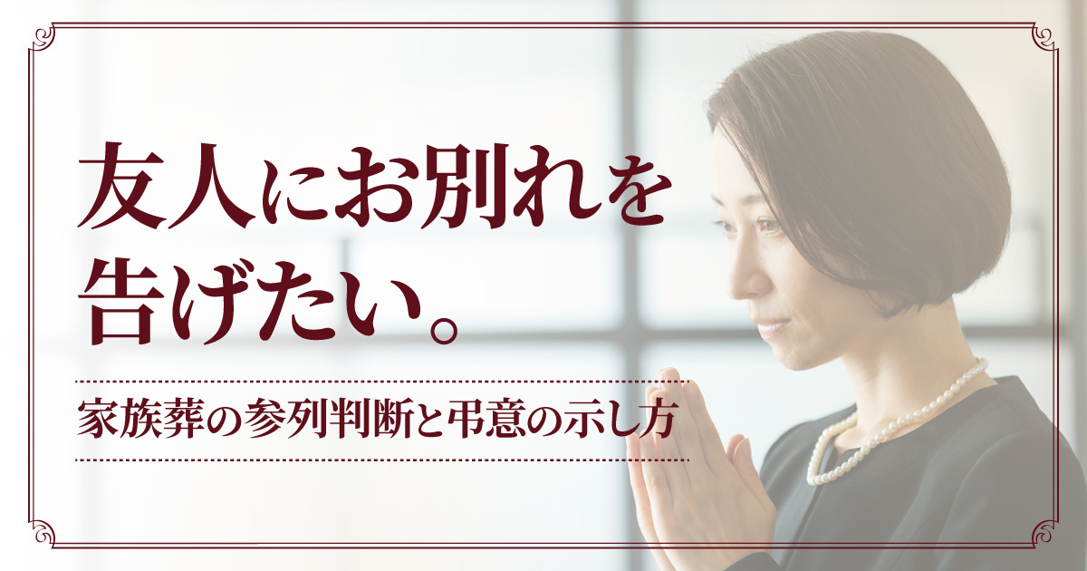 この場合、あなたは「故人の友人」ではなく「遺族(友人)の支え役」という立場になります。家族葬であれば原則として参列は控え、友人の気持ちに寄り添うことを優先しましょう。
